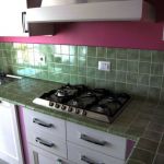 La posa delle piastrelle può essere eseguita su cucine in muratura con materiali ceramici di ogni tipo e scegliendo i collanti specifici adeguati alla struttura. Si rivestono anche cucine con struttura in legno o piano in multistrato marino mediante uso di colle sintetiche e stucchi epossidici.