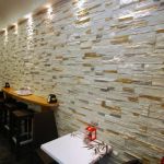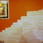 Si eseguono rivestimenti in pietra ricostruita, quarzite, materiali che richiedono stuccatura dei giunti con sac à poche.