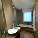 In seguito la superficie viene, all'occorrenza, rasata con stagge e sfrattazzata per creare le condizioni ottimali per la posa del mosaico ed eventualmente, in caso di superfici destinate al contatto diretto con l'acqua (docce, lavabi, vasche), per favorire l'applicazione dei prodotti impermeabilizzanti delle linee Kerakoll e Mapei.